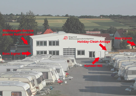 - Unser Bürogebäude ist direkt an den Stellplatz angeschlossen